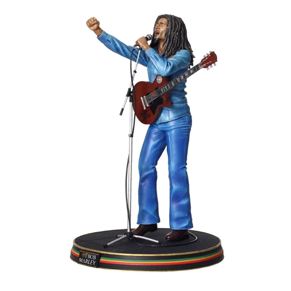 “Pay tribute to the legendary Bob Marley with this incredible collectible figure! Standing 24cm tall, this figure captures Bob Marley’s iconic concert at London’s Rainbow Theater in 1977. Relive that historic moment with every detail carefully reproduced: from his signature outfit, with blue denim pants and shirt, to his unmistakable guitar hanging