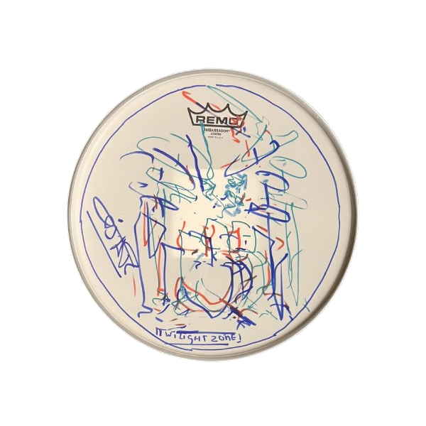 Dit unieke drumvel is beschilderd en gesigneerd door Cesar Zuiderwijk, 50 jaar lang drummer van de Golden Earring. Het is een doorzichtig vel van het merk Remo, Ambassador coated, die een diameter van 32 cm (12,5 inch) heeft.