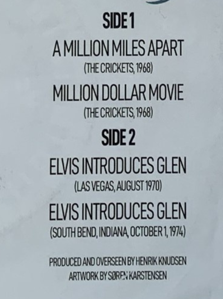 Van dit boek werden 300 genummerde luxe-edities uitgebracht, inclusief een 45RPM kleurenvinyl met Glens eerste arrangementopname plus een gesigneerde foto. De verdeler in elk land kan zelf bepalen in welke kleur deze vinyl zal aangeboden worden. Elvis Matters kiest voor een Pink Vinyl versie.