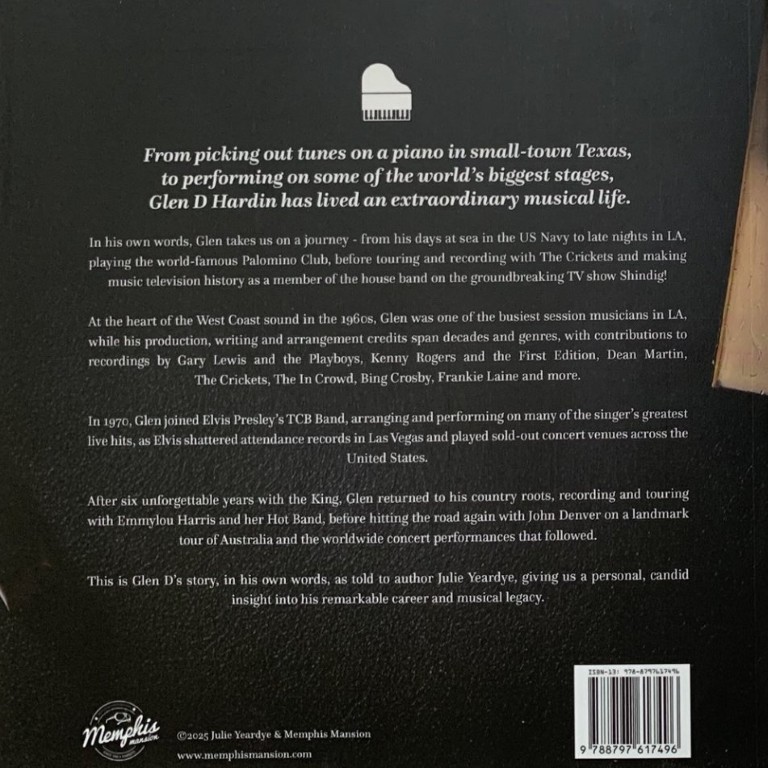 Het gewaardeerde Memphis Mansion Label uit Denemarken bracht zonet een exclusief boek uit over Elvis’ pianist Glen D. Hardin. Zijn tijd bij de TCB-Band en Elvis zal het grootste deel van het boek in beslag nemen : “On piano – Glen D Hardin”.