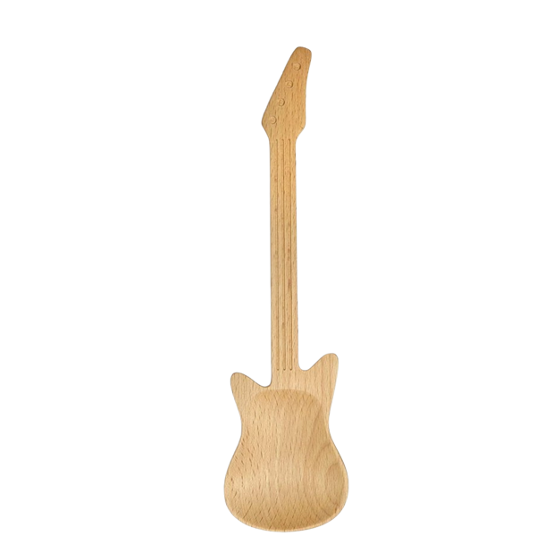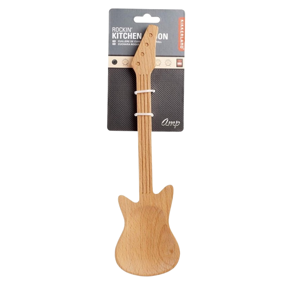 Gitaar keukentool van Kikkerland. Houten opscheplepel in de vorm van een gitaar. De lepel is een onmisbaar keukenhulpje en valt door zijn vorm extra op. Leuk om op tafel te leggen tijdens een etentje. De Rockin’ Kitchen Spoon van Kikkerland is gemaakt van beukenhout en heeft een afmeting van 7,5 x 9 centimeter. Alleen op de hand af te wassen.
