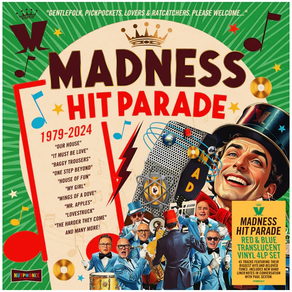 Het album Hit Parade: 1979 – 2024 van Madness is een verzamelbox die het beste uit 45 jaar van de band samenbrengt. Het betreft een 4 LP boxset, uitgebracht op gekleurd vinyl en verpakt in een luxe slipcase, met elk half van de collectie op respectievelijk rood en blauw doorschijnend vinyl. Het album beslaat het genre ska en pop, typerend door de kenmerkende vrolijke, hoekige blazers en de typische Britse humor die Madness groot maakte. Deze boxset is een carrière-omspannende anthologie en bevat liefst 45 singles, waaronder 27 UK Top 40-hits. Iconische tracks als Our House, It Must Be Love en Baggy Trousers worden hierbij niet overgeslagen. Daarnaast zijn er ook minder bekende nummers zoals Lovestruck en speciale remixes, waaronder Drip Fed Fred (The Conspiracy Mix), die voor het eerst op een Madness-compilatie verschijnen. Hierdoor is het niet alleen een feest van herkenning, maar ook interessant voor de echte verzamelaar. Het verzamelalbum markeert het eerste grote overzicht sinds 2017 en werd uitgebracht in 2025. Hit Parade viert het blijvende erfgoed van Madness, met ouder én nieuwer werk in een exclusieve presentatie die liefhebbers van vinyl en Britse popcultuur zal aanspreken.